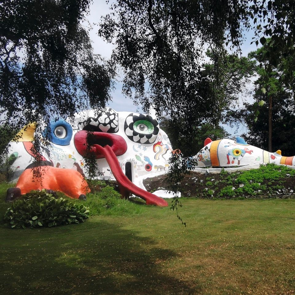 In 1972, having completed several monumental works, fountains and sculpture houses, she built her Golem, a huge monster head, comprising two levels, in the city of Jerusalem. It sticks out three tongues, which are actually slides for children to play on. Shortly after this came the Dragon, sharing a similar aesthetic to the Golem, but with a body some 33.5m long and 7m wide and a tail that winds its way far out into the garden of its patron, Roger Nellens. He had originally intended it to be a playhouse for his son, Xavier, but for the artist the project took on a far greater magnitude. ‘The monster represents my inner nature, instinctive and untameable. It fascinates and terrifies me,’ Saint Phalle revealed. ‘It is my predator and the link that binds me to my destiny.’