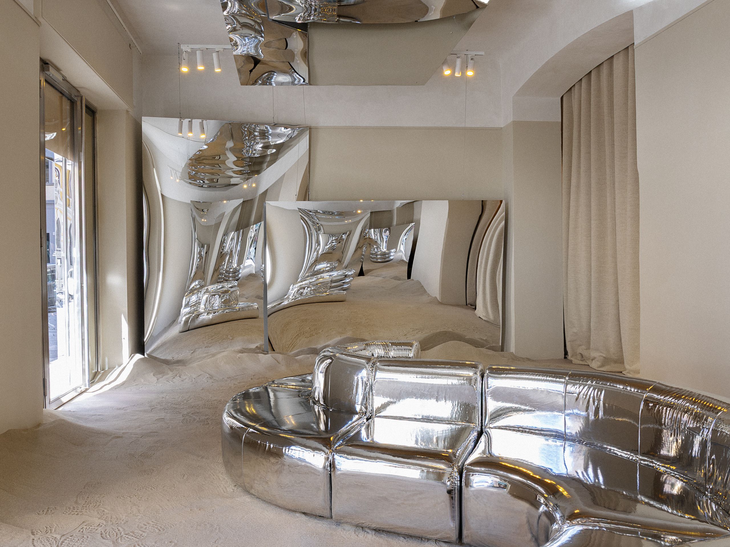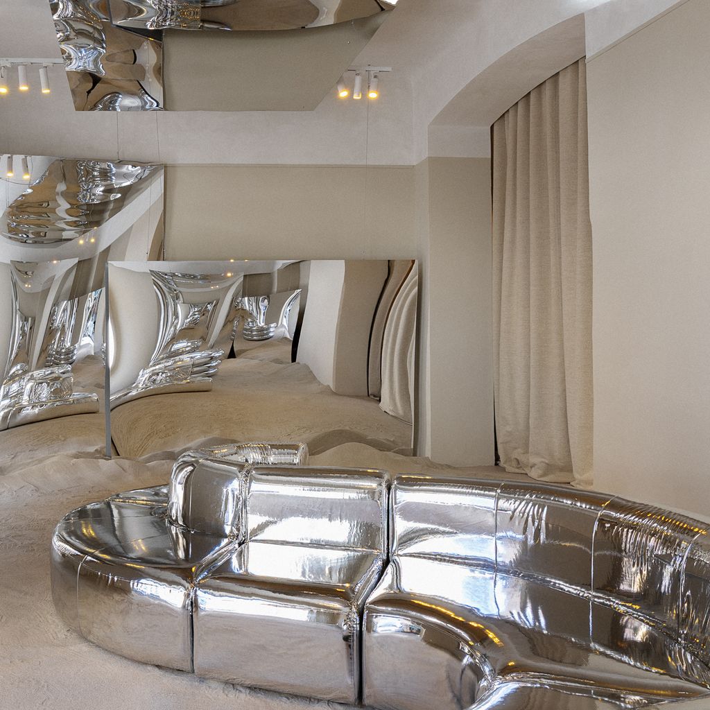 The brief blip of 60s/70s revival in 2022 returned in full, fierce force at Salone: thick tufted rugs and butter, toast and avocado hues (here’s looking at you, Faye Toogood x Tacchini, Anglepoise and JOV x Laurids Gallée), as well as its more outre accoutrements. Take for instance creative duo Barbieri Magalini’s Specular Oasis at Spazio MM where a modular sofa by Christine Kalia in Barbarella-silver leather snaked over a bed of sand in a hall of mirrors (far out!); Richard Hutten’s Warhol-esque banana overlay on a classic carpet for Jaipur Rugs; and, indeed, Dimorestudio x Loro Piana’s surreal 70s villa. The maddest of these era-defining reimaginings was undoubtedly Range Rover’s camp Futurespective: Connected Worlds ‘time capsule’, designed in collaboration with NUOVA. Met by a ‘flight attendant’ in a baby-blue Pan Am-inspired uniform, visitors had their passports stamped for a trip to the past. The first room, inspired by a 1970s car dealership, sported oxblood sofas, an Enzo-esque circular table in Carrara marble, a silver Panton-silouhette lamp, and two Italian actors greeting guests with groovy lingo between the wood pannelling, working fish tank and a classic olive-green YVB 151H Rover. That 70s show continued with a new line of furniture that interiors designer Giampiero Tagliaferri crafted for Minotti; a breath of fresh air for the Italian brand. To give something of a riposte to Keith’s offhand comment about this era, look no further than Andy W: ‘They say time changes things, but you actually have to change them yourself.’ Salute to the 70s revival!