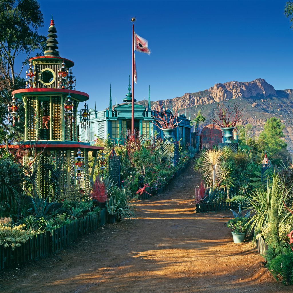Duquette had bought this dramatic 150-acre stretch of land, overlooked by the Mordor-like crags of Mount Boney and with views down a long valley towards Santa Barbara, in the 1950s. Christening it Sortilegium (Latin for divination and fortune-telling), he began the creation of a village-like enclave of fantastical pavilions and pagodas, each given a distinctive name and fashioned from his vast repository of found and repurposed objects.